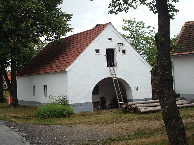 · Hasičská zbrojnice z roku 1930, v horní části obce