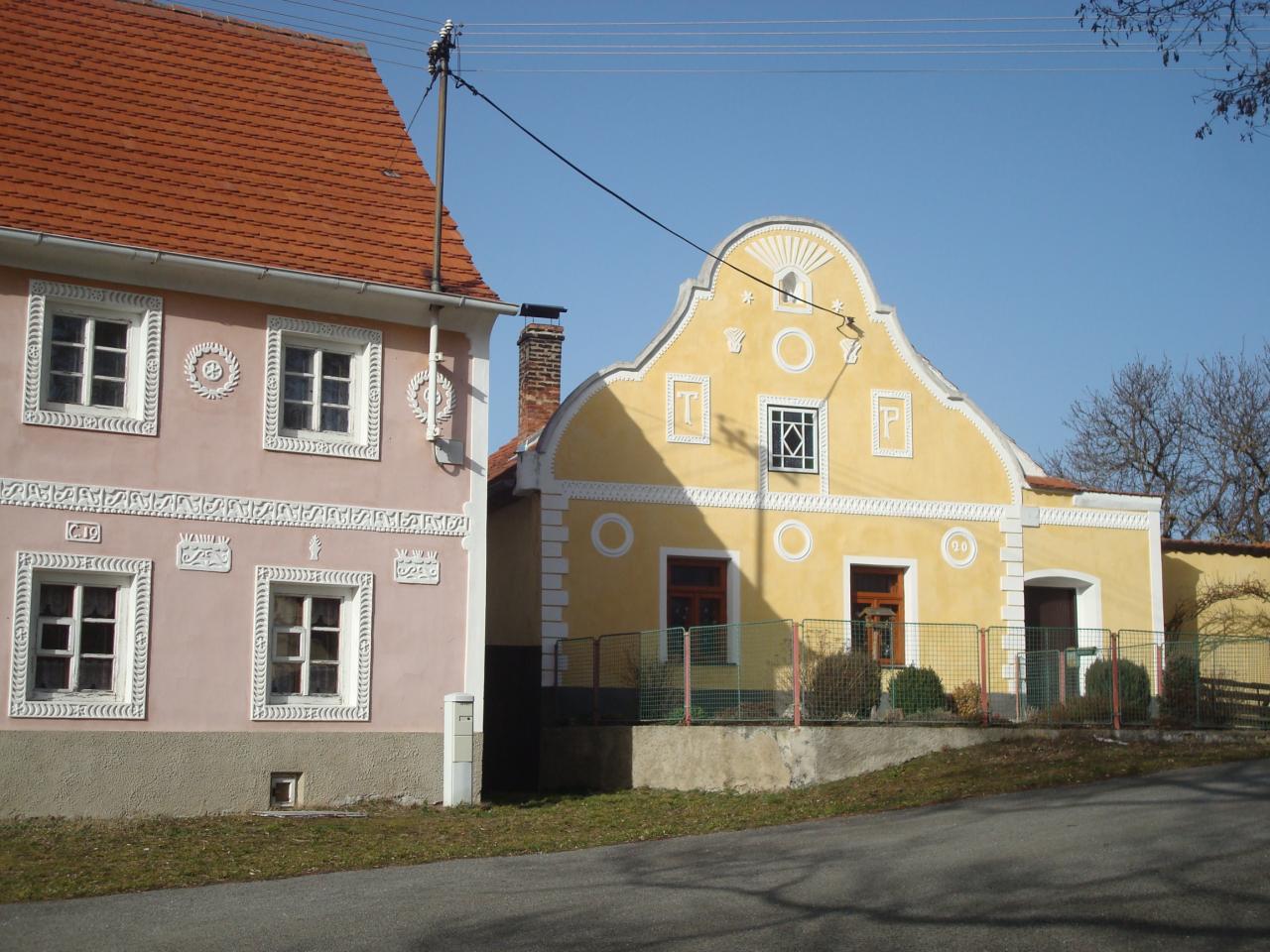 Základem půdorysu Lhenic je nevelké obdélné náměstí, přes které procházela cesta z Č. Krumlova do Netolic a jeho severní stranu tvoří kostel. Postupně se začalo městečko rozrůstat a před třicetiletou válkou čítalo na 70 domů. Při ní ale bylo zničeno takřka z celé třetiny. Od roku 1713 se dostavil opět růst a další rozvoj nastal ve 20. a 30. letech 20. století. Bohužel, stavební úpravy 5O. let dosavadní urbanistický vývoj deklasovaly a městečko přišlo o svou dosavadní malebnost. Památkový výraz si zachovaly jen jednotlivé domy, především okolo náměstí a podél cesty do Krumlova. Dominantou je kostel Sv. Jakuba, který má raně gotický původ. Zachována je spodní část věže z 1. třetiny 13. století, později byl goticky přestavěn. K další změně došlo v roce 1560 a v letech 1734 - 40. Byla prodloužena loď a zaklenut presbytář. V roce 1783 zvýšili stavebníci věž a roku 1904 prodloužili presbytář a zakončili jej půlkruhovou apsidou. Pod kostelem je zemanská tvrz, které se zde říká „Na zámku“. Na začátku tohoto století zde byla objevena jáma, kterou tehdy považovali za propadlé sklepy a údajně kolem roku 1920 zde byly nalezeny i jakési tesané kvádry. Sklepení prý vede pod celými Lhenicemi až na Hradce, nebo až na Grejnarov. Veškeré památky však byly v roce 1950 zničeny. Starší historická literatura se domnívá, že zde stálo Grejnarovo renesanční sídlo. Podle dnešních názorů však šlo o objekt daleko starší. Panský dům (čp. 156), vznikl v 16. století na vyvýšené terase severozápadně pod kostelem. Počátečním stavitelem byl zřejmě Martin Grejnar, vysoký rožmberský úředník, ale dále pokračoval Petr Vok. Později byla stavba přebudována a z 1. patra byl roku 1909 přenesen kazetový strop na zámek Hluboká nad Vltavou. V roce 2016 došlo k výrazné rekonstrukci náměstí.