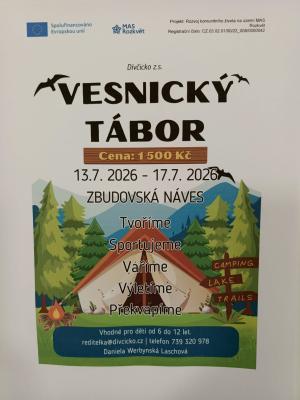 Tábor je určen pro děti ve věku od 6 do 12 let a je spolufinancován místní akční skupinou Rozkvět a Evropskou unií.