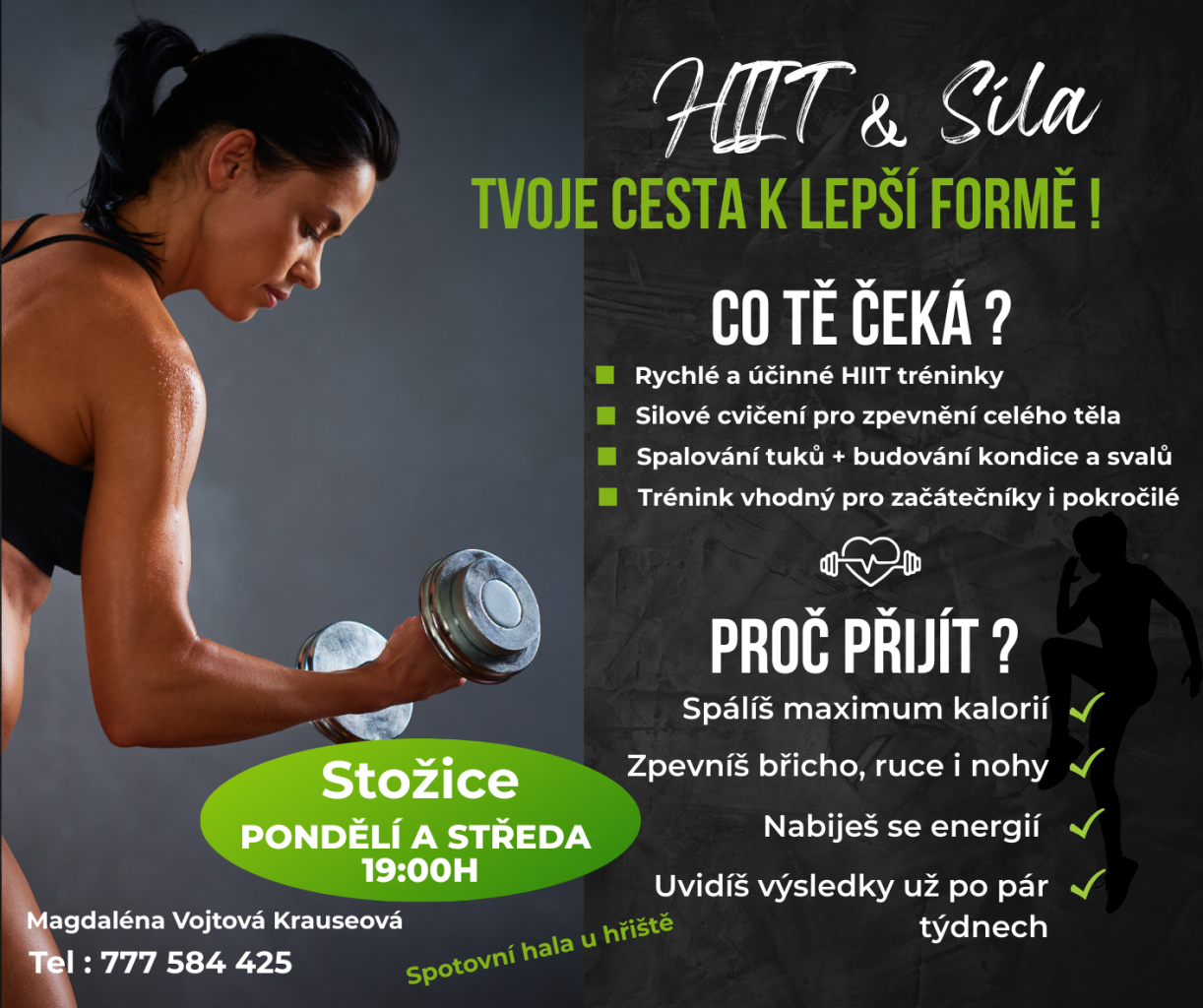 Zveme vás na jedinečný trénink HIIT, který je ideální pro každého, kdo chce zpevnit své tělo a zlepšit kondici. Na programu jsou rychlé a účinné tréninky, které vám pomohou spálit maximum kalorií a budovat svaly. Uvidíte výsledky už po několika týdnech a naberete energii pro každodenní život.