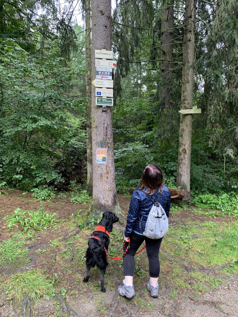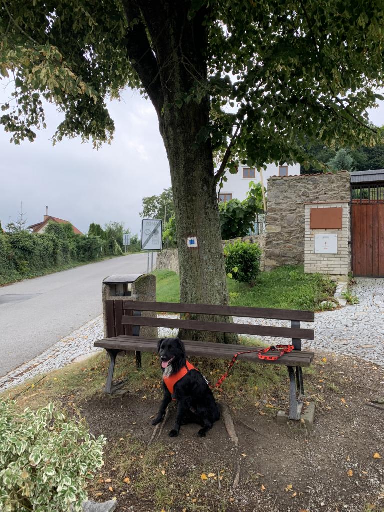 Kdo nekoukal z Dívčáku do krajiny, o hodně přišel! Až se vynadíváte na údolí řeky Vltavy, držte se teď prosím červené a zahněte do kopce, který bude jen chvíli. Byl váš pes někdy v keltském oppidu? Když půjdete podle naučné stezky mírně vlevo, může si to odfajkfknout. Proženete duchy Keltů a jste v Třísově. Červená vás provede po klidné, nevytížené cestě kolem oveček, skrz krásnou CHKO Blanský les, řeky Vltavy do Plešovic, kde si udělejte fotku s mini modelem jihočeské vesnice a směle směr Zlatá Koruna. Tzv. Zlatka má totiž dlouhodobě výrazné genius pa(lo)ci. Tady je k očichání klášter Zlatá Koruna, posezení u řeky, anebo pokud vám packy stačí, je to kousek na Kleť nebo do Českého Krumlova, ale o tom příště…Jezdí nám tu všude vlaky zpět a tam, takže klidně nasedněte, kam potřebujete.